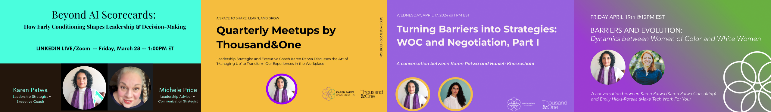 âKaren has developed an eye opening framework to help women of color. We contort ourselves just to be accepted and âstay small and nonthreateningâ. Iâve learned how to express my leadership vision through communication, relationships with colleagues, and direct reportsâŚand how to build alliances to have greater influence inside predominantly white, male-dominated organizational structures.